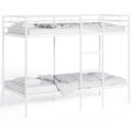 This bunk bed is a space-saving solution with two beds in one, making it ideal for accommodating guests, sleepovers, and families with multiple children. Robust metal construction: The bed frame is made from steel. Steel is an exceptionally hard and strong material that offers exceptional sturdiness and stability.Breathable & supportive base: The bed frame includes a mesh fabric base that provides excellent support and breathability for your mattress.Maximise space utilisation: This bunk bed frame cleverly combines two single beds into one, offering a space-saving solution for accommodating guests, sleepovers, and families with multiple children.Easy to climb up and down: This loft bed features a built-in ladder, providing convenient access for users to climb up and down.Guardrails for enhanced safety: This bed base is equipped with guardrails to prevent you from falling out of bed while sleeping. Warning:To prevent it from tipping over, this product must be used with the wall attachment device (not provided).The upper bed is not suitable for children under 6 years old. Good to know:The mattresses are not included with this bed. We do offer a various selection of mattresses. You can check our shop for a matching mattress.Screws and plugs for inside the wall are not included. We advise to find and use screws and plugs suitable specifically for your walls. If you're not sure, you can consult with a professional. Please read and follow each step of the instructions.