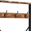 The wooden clothes rack provides a natural solution for organising your space, combining practical design with sturdy functionality. Robust and stable material: Solid reclaimed wood consists of reused timbers such as teak, mango wood, pinewood, and beech. These materials are recycled from old buildings such as factories, sheds, and boats. Signs of wear and visible grain structure give each piece its own history and a unique look.Ample storage space: The coat rack features the hanging rod for organising your clothes, ensuring everything is within easy reach. The shelf is ideal for storing boxes and shoes. Additionally, 3 hooks provide a convenient place to hang your handbags and hats.Space saving: This coat hanger can be wall-mounted to add extra storage space. That way, you can maximise your floor space and keep the area clean.Wide applications: Perfect for various spaces, this clothes hanger rack can be used in hallways, entryways, or bedrooms as a coat rack, or in living rooms as a display shelf. It also works well in bathrooms, laundry rooms, and kitchens for extra storage and organisation. Good to know:Each item is unique with variations in colours and grains. The delivery is random, ensuring the exclusivity and individuality of your product. Warning:To prevent it from tipping over, this product must be used with the provided wall attachment device.
