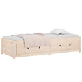 This versatile day bed can be used not only as a bed in the bedroom, but also fits ideally as a sofa in the living room. It will suit your different needs perfectly, providing you with plenty of space for sleeping or resting. Solid pine wood: Solid pine wood is a beautiful natural material. Pine wood has a straight grain, and the knots give the material its signature, rustic look.Multipurpose sofa bed: This wooden sofa bed can be used as a sofa during the day or as a bed at night, providing a quick solution for hosting overnight guests.Sturdy bed frame: The wooden frame of the guest bed ensures sturdiness and stability. The plywood slats provide good weight distribution, ensuring that the mattress stays in place with every twist and turn of your body during sleep.Storage function: The included bed drawers provide ample storage space for storing your essentials, keeping your room clean and tidy. Note:The delivery includes a bed frame only. The mattress is not included. You can check our shop for the matching mattresses.This bed frame is suitable for a mattress measuring 90 x 200 cm.