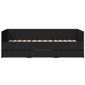 This 2-in-1 daybed with drawers, serving as both a sofa and bed, makes a practical and eye-catching addition to your living room or bedroom. Versatile daybed: The sofa bed functions as a sofa during the day and easily converts into a double bed at night by pulling out the trundle, providing a convenient solution for hosting guests and maximising space. Ample storage space: This guest bed has 3 drawers with wheels that provide ample space for storing your clothes, socks, toys, cushions, etc.Solid construction: This day bed sofa has a sturdy frame made of engineered wood. The engineered wood is of exceptional quality with a smooth surface and features strength, stability and resistance to moisture. Good to know:The delivery includes a daybed frame only. The mattress is not included. You can check our shop for the matching mattresses.