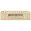 This versatile day bed can be used not only as a bed in the bedroom but also as a sofa in the living room. It will suit your different needs perfectly, providing you with plenty of space for sleeping or resting. Solid construction: This day bed sofa has a sturdy frame made of engineered wood. The engineered wood is of exceptional quality with a smooth surface and features strength, stability and resistance to moisture.Storage function: The included bed drawers provide ample storage space for storing your essentials, keeping your room clean and tidy.Sturdy slats: The plywood slats provide good weight distribution, ensuring that the mattress stays in place with every twist and turn of your body during sleep. Good to know:A mattress is not included with this bed. We do offer a various selection of mattresses. You can check our shop for a matching mattress.