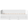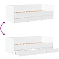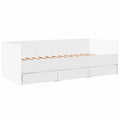 This 2-in-1 daybed with drawers, serving as both a sofa and bed, makes a practical and eye-catching addition to your living room or bedroom. Versatile daybed: The sofa bed functions as a sofa during the day and easily converts into a double bed at night by pulling out the trundle, providing a convenient solution for hosting guests and maximising space. Ample storage space: This guest bed has 3 drawers with wheels that provide ample space for storing your clothes, socks, toys, cushions, etc.Solid construction: This day bed sofa has a sturdy frame made of engineered wood. The engineered wood is of exceptional quality with a smooth surface and features strength, stability and resistance to moisture. Good to know:The delivery includes a daybed frame only. The mattress is not included. You can check our shop for the matching mattresses.