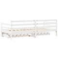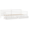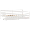 This 2-in-1 daybed with drawers, serving as both a sofa and bed, makes a practical and eye-catching addition to your living room or bedroom. Stable and long-lasting frame: Solid pinewood is known for its strength and durability. Its straight grains and distinctive knots contribute to its rustic charm.3-sided bed rails: This sleeper bed has a unique design on the side of the bed, providing a sense of security and also adding a touch of sophisticated style to your home.Slats for optimal support: The couch bed is complete with slats to offer essential support and breathability to your mattress.Rustic charm: The sofa bed gives your space rustic undertones that can be really relaxing. The calming effect of this wooden day bed turns any bedroom, guest room into a soothing place while adding a natural element to the room.Ample storage space: This guest bed has two drawers that provide ample space for storing your clothes, socks, toys, cushions, etc. Good to know:Mattresses are not included with this bed. We do offer a various selection of mattresses. You can check our shop for matching mattresses.