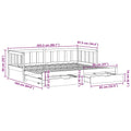 This 2-in-1 daybed with trundle, serving as both a sofa and bed, makes a practical and eye-catching addition to your living room or bedroom. Stable and long-lasting frame: Solid pinewood is known for its strength and durability. Its straight grains and distinctive knots contribute to its rustic charm.Versatile daybed: The sofa bed functions as a sofa during the day and easily converts into a double bed at night by pulling out the trundle, providing a convenient solution for hosting guests and maximising space.Slats for optimal support: The couch bed is complete with slats to offer essential support and breathability to your mattress.Ample storage space: This guest bed has two drawers that provide ample space for storing your clothes, socks, toys, cushions, etc. Good to know:Mattresses are not included with this bed. We do offer a various selection of mattresses. You can check our shop for matching mattresses.
