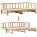 This 2-in-1 daybed with trundle, serving as both a sofa and bed, makes a practical and eye-catching addition to your living room or bedroom. Stable and long-lasting frame: Solid pinewood is known for its strength and durability. Its straight grains and distinctive knots contribute to its rustic charm.Versatile daybed: The sofa bed functions as a sofa during the day and easily converts into a double bed at night by pulling out the trundle, providing a convenient solution for hosting guests and maximising space.Slats for optimal support: The couch bed is complete with slats to offer essential support and breathability to your mattress.Ample storage space: This guest bed has two drawers that provide ample space for storing your clothes, socks, toys, cushions, etc. Good to know:Mattresses are not included with this bed. We do offer a various selection of mattresses. You can check our shop for matching mattresses.