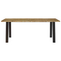 This dining table, with a solid acacia wood tabletop and stable metal legs, makes a great addition to your dining room or kitchen. Solid acacia wood: The tabletop is made of solid acacia wood. Solid acacia wood is a beautiful natural material. Acacia wood is a tropical hardwood, which is dense, sturdy, and durable.Stable frame: The powder-coated steel legs add an industrial style to your interior while ensuring the stability of the dinner table.Practical tabletop: The sturdy tabletop of the kitchen table is perfect for placing meals, drinks, and other decorative items.
