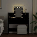 The dressing table is a great addition to your bedroom decor while keeping your cosmetics close at hand! Stable and durable material: Engineered wood is a durable and stable material with a smooth surface that is resistant to moisture, warping, and splitting, making it a reliable choice for a variety of projects.Ample storage space: The makeup table with 2 drawers and 2 shelves offers ample storage space for keeping your various daily essentials well organised and within easy reach.Utility mirror: A beautiful mirror provides the view for makeup application and adds an elegant touch to the vanity desk.LED light: The vanity table has LED bulbs with USB, which are easy to switch modes from warm to cold white. The featured LED bulbs around the mirror illuminate your beauty as well. Warning:To prevent it from tipping over, this product must be used with the provided wall attachment device.