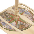 The wooden globe opens to reveal a large bar with plenty of room for wine, spirits, beverage and stemware, thus you are able to display your bottles and glasses in order in hidden space while ensuring easy access. Equipped with extended table and the bottom base, you can also put bottles and stemware on the table or at the bottom base. The outside surface of the bar globe is wrapped with old nautical map, while the table, base and inside of globe are featured renaissance era paintings, making the globe bar cabinet a work of art and a good decoration for home or office. The cabinet is equipped with wheels, making the movement of the cabinet not an awkward task any more. You are able to move the wine cabinet to any corner of your room with ease. This globe bar cabinet with table and wheels is undoubtedly a perfect combination of storage and aesthetic functions.