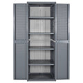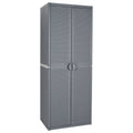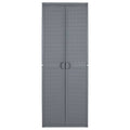 This garden storage cabinet featuring a practical design is a real eye-catcher for your home decor. Durable material: The cabinet is made of polypropylene. Polypropylene (PP) is a popular plastic that is also one of the most used materials in outdoor furniture. It's lightweight, tough, and resistant to impact.Ample storage space: With 4 shelves, this sideboard cabinet provides ample space for organising and storing your essential items like tissues, laundry detergent, brushes, and more.Handle design. The handles on the door allow the easy and quick opening of the cupboard. Good to know:To make assembly as easy as possible, each product is delivered with a manual.Warning:To prevent it being overturned, this product must be used with the wall attachment device (not provided).
