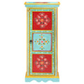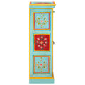 This unique hand-painted solid mango wood highboard adds a pop of colour and makes an eye-catching addition to your current home interior. This storage cabinet features rich, hand-painted decorative details which exude a touch of elegance and highlight the refined look. The high cabinet is equipped with 3 shelves, providing ample space for storing your personal items, such as books, magazines, and other essential. This side cabinet is made of solid mango wood, a tropical hardwood. It has the strength to bear the weight and also stand the wear and tear of time. Additionally, the exquisite craftsmanship makes every piece slightly different from the next. This colourful highboard is a decorative as well as practical addition to your decor! Important note: The colours vary from piece to piece, making each piece unique. The delivery is random, ensuring the exclusivity and individuality of your product.