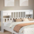 This stylish headboard gives your bed frame a complete look and fits any bedroom. Stable and long-lasting frame: Solid pinewood is known for its strength and durability. Its straight grains and distinctive knots contribute to its rustic charm.Ample storage space: This sleek headboard features 6 convenient compartments and 2 drawers, offering ample storage space to keep all your nighttime essentials within easy reach.Space saving: This headboard is a space-saving option that can replace the need for a bedside table, helping maximise your bedroom space, and making it ideal for small or limited spaces.Freestanding headboard: The freestanding headboard offers a hassle-free solution for effortless placement and repositioning without the need for wall installation.