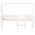 This high sleeper bed, with versatility at the heart of its design, is a perfect combination of sleek, modern styling and practicality. It is ideal for small rooms. Solid pine wood: Solid pine wood is a beautiful natural material. Pine wood has a straight grain, and the knots give the material its signature, rustic look.Practical function: The loft bed offers a great way to utilise floor space in your child's bedroom, you can combine it with a cool game curtain, game mattress and shed panel as a play corner or use the area underneath for storage. The plywood slats provide additional support for your bed. It extends the lifetime of your mattress by absorbing most of the stress and weight on the bed.Safe design: The high bed's built-in ladder makes climbing in and out of bed easy, and guardrails ensure your young ones stay safe while they slumber.Great fun: By combining the roof with your child's bed, you can create a hideaway that offers your kid lots of bedtime fun. This innovative addition will not only be a thrilling focal point but will also bring wonder and excitement to the kids' room.Open side door: The roof features an open side door, providing easy access for your kids to get in and out of bed. Good to know:A mattress is not included with this bed. We do offer a various selection of mattresses. You can check our shop for a matching mattress.