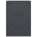 Are you hunting for a stylish highboard? This highboard adds an elegant charm to your existing interior! Stable material: The sideboard's frame is made of cold-rolled steel. Cold-rolled steel is a kind of low-carbon steel produced by a "cold rolling" method and processed at near normal room temperatures. Cold-rolled steel has a smoother surface, greater strength, and higher precision.Ample storage space: This sideboard offers handy storage space for keeping your magazines, books, remote controls and other small items well-organised and within reach.Easy to maintain: The cabinet is easy to clean with a damp cloth and requires less maintenance.Practical handle: The sideboard comes with 4 handles that make it easy to open and close the cabinet while also adding to extra beauty. Warning:To prevent it from tipping over, this product must be used with the wall attachment device (not provided).