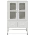 This highboard offers both decorative appeal and practical storage, making it a perfect addition to your home. Robust and stable material: Cold-rolled steel is a type of low-carbon steel that is produced using the "cold rolling" process and processed at near-normal room temperatures. Cold-rolled steel has a smoother surface, higher strength, and higher precision.Ample storage space: The cabinet offers ample storage space for dining essentials and other household items to keep them organised and within reach.Practical door: The door of the storage cabinet provides enclosed storage space to keep your belongings organised, protected and out of sight.Flexible door installation: The door of the compartment can be installed on the left or right according to your personal habits and convenience.Practical handles: The sideboard comes with handles that provide a comfortable grip, helping you open and close the cabinet easily while adding extra beauty. Warning:To prevent it from tipping over, this product must be used with the provided wall attachment device.