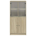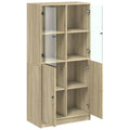 This highboard provides an ideal solution for organising your books and will add a touch of modern charm to your interior. Durable and sturdy material: The engineered wood is of exceptional quality with smooth surface and also features strength, stability and resistance to moisture.Ample storage space: The side cabinet offers ample storage space for keeping your collection of books, magazines, and documents in good order.Stable and sturdy top: The top of the tall storage cabinet is perfect for displaying your decorative items, picture frames, and potted plants.Practical design: Keep your essentials free from dust by hiding them behind doors. In addition, the black handles make it easy to open the tall cabinet. Warning:To prevent it from tipping over, this product must be used with the provided wall attachment device.