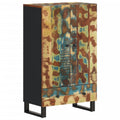 Are you hunting for a stylish highboard? This highboard adds an industrial charm to your existing interior! Solid reclaimed wood: Solid reclaimed wood consists of reused timbers such as teak, mango wood, pinewood, and beech. These materials are recycled from old buildings such as factories, sheds, and boats. As every piece is handmade, colours will vary for each product.Ample storage: Featuring 2 compartments and 1 drawer, this cabinet makes it easy to keep your things organised.Iron legs: The iron legs of the side cabinet not only ensure sturdiness and stability but also add the inspired design of old factories and industrial space to your living area. Good to know:The colours may vary from piece to piece, making each piece unique and slightly different from the next. The delivery is random, ensuring the exclusivity and individuality of your product. Warning:To prevent it being overturned, this product must be used with the provided wall attachment device.