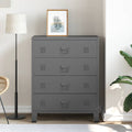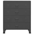 This drawer cabinet will keep your house clean and well-organised! This storage cabinet is made of metal, making it sturdy and stable. The cabinet has 4 drawers, which provide ample storage space to keep your DVDs, multimedia appliances, books and small essential items organised and within reach. Each drawer is equipped with air vents, which underline the industrial look. It is also easy to clean with a damp cloth.