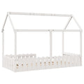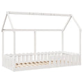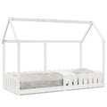 Your child will adore this fantastic wooden kids' house bed frame, whether they're dreaming up their next adventure or drifting off to sleep.Stable and long-lasting frame: Solid pinewood is known for its strength and durability. Its straight grains and distinctive knots contribute to its rustic charm.Playful house design: This playful house-inspired bed frame transforms sleeping time into a whimsical adventure for kids. It provides a cosy spot for bedtime and a playful area for imaginative play.Low floor bed: This bed frame is specifically designed to be low to the ground, making it safer and more accessible for your child to move around and get in and out of bed independently.Rails for enhanced safety: This bed frame is equipped with side rails to prevent your child from falling out of bed while sleeping.Open roof structure for DIY: The open roof structure provides endless design possibilities, allowing you to easily hang decorations or attach a play tent to create a truly magical and personalised space.Good to know:A mattress is not included with this bed. We do offer a various selection of mattresses. You can check our shop for a matching mattress.
