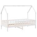 Your child will adore this fantastic wooden Kids' house bed frame, whether they're dreaming up their next adventure or drifting off to sleep.Stable and long-lasting frame: Solid pinewood is known for its strength and durability. Its straight grains and distinctive knots contribute to its rustic charm.Playful house design: This playful house-inspired bed frame transforms sleeping time into a whimsical adventure for kids. It provides a cosy spot for bedtime and a playful area for imaginative play.Rails for enhanced safety: This bed frame is equipped with side rails to prevent your child from falling out of bed while sleeping.Open roof structure for DIY: The open roof structure provides endless design possibilities, allowing you to easily hang decorations or attach a play tent to create a truly magical and personalized space.Spacious under-bed storage: This bed frame is designed with ample space underneath for storage boxes, baskets, drawers, and more.Good to know:A mattress is not included with this bed. We do offer a various selection of mattresses. You can check our shop for a matching mattress.
