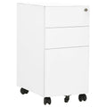 This mobile file cabinet, with a modern design, is ideal for file storage. This office cabinet is made of steel, making it durable as well as easy to clean. With 3 drawers and 1 lock, this file cabinet allows you to neatly sort your files into different categories and keep files safe. Each drawer is equipped with 1 removable hanging bar, which can be freely combined to store letter size, legal size and A4 hanging file folder. The mobile caninet has a pencil tray, which can make your desktop more tidy. Drawers with 3 sections ballbearing runners ensure smooth opening and closing, even under increased load, these drawers can be fully extended. Additionally, the left and right corners of the cabinet are round. The file cabinet fits well under a desk and will suit any office decor thanks to its iconic design.