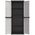 This outdoor storage cabinet is ideal for organising and storing household supplies, tools, or other items. Durable material: Polypropylene (PP) is a popular plastic that is also one of the most used materials in outdoor furniture. It's lightweight, tough, and resistant to impact. Also, this garden storage cupboard is weather-resistant and easy to maintain. Ample storage space: This utility cupboard provides ample storage space to help you sort out your garden supplies, tools, or other items. And the shelf can be adjusted to accommodate items of different sizes. Lockable: The garden storage furniture can be locked for added safety (lock not included). Compact design: With a compact design to make the most of limited space, this outdoor cupboard is perfect for gardens, balconies, and patios. Good to know:To make sure your outdoor furniture stays beautiful, we recommend protecting it with a waterproof cover. Warning: To prevent it being overturned, this product must be used with the provided wall attachment device.