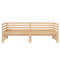 This multifunctional wooden day bed can be used as a sofa during the day, or as a bed at night to offer a quick solution to accommodate overnight guests. This practical sofa bed is definitely an eye-catcher wherever it goes! The sofa bed is made of solid pinewood, making it sturdy and stable. Featuring a pull-out bed, the piece of furniture can be easily converted into a sofa during the day and a comfortable bed at night. This daybed frame maximises the available floor space while providing sleeping space for two people, making it an ideal choice for people with limited living space. Moreover, the pull-out bed is equipped with a side board that will keep the user from rolling out while sleeping. Please note: The delivery includes a daybed frame only. The mattress is not included. You can check our shop for the matching mattresses.