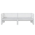 This multifunctional wooden day bed can be used as a sofa during the day, or as a bed at night to offer a quick solution to accommodate overnight guests. This practical sofa bed is definitely an eye-catcher wherever it goes! The sofa bed is made of solid pinewood, making it sturdy and stable. Featuring a pull-out bed, the piece of furniture can be easily converted into a sofa during the day and a comfortable bed at night. This daybed frame maximises the available floor space while providing sleeping space for two people, making it an ideal choice for people with limited living space. Moreover, the pull-out bed is equipped with a side board that will keep the user from rolling out while sleeping. Please note: The delivery includes a daybed frame only. The mattress is not included. You can check our shop for the matching mattresses.