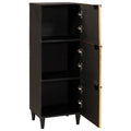 The Wooden Side Cabinet is the ideal stylish spot for all your bits and bobs in modern living spaces. It’s made from solid mango wood and engineered wood, featuring a striking black and gold design that fits right in with any chic living room. Whether you want to show off your decorative bits or hide away the everyday stuff, this cabinet has got you sorted. Materials: Built with solid mango wood for strength and durability, with engineered wood at the back for support without being too heavy—making it a well-balanced piece of furniture. Included Components: Comes with sleek black legs and bar handles that not only look good but are practical too. The flush solid mango wood door finishes off the chic look, and the vibrant gold offers a striking contrast. Features / Function / Design: Smartly designed to maximise storage without taking up loads of space—perfect for city living. Its rectangular shape makes sure you make the most of the area. The modern style fits right into contemporary homes. Recommended Uses: Ideal for living rooms, this cabinet easily holds decorations, books, or whatever you need, keeping your space looking tidy and stylish. It’s super versatile for different needs, making it great for homes with limited room. Care & Maintenance: To keep its classy look, just dust it with a dry cloth and steer clear of harsh chemicals. You’ll need two people and a screwdriver for assembly to make sure it’s sturdy and easy to handle.