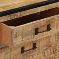 This industrial style wooden sideboard will make a decorative as well as practical addition to your decor. The storage cabinet is handmade out of steel and solid rough mango wood, which makes it sturdy and stable. The craftsmanship and the beautiful wood grains make every piece of furniture unique and slightly different from the next. Additionally, this side cabinet has ample storage space for keeping your important items organised and within reach. Important note: Colours and grains may vary from piece to piece, making each piece unique. The delivery is random, ensuring the exclusivity and individuality of your product.