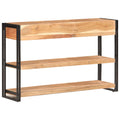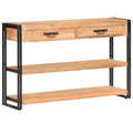 Create a tidy home with this elegant wooden sideboard! It's a truly decorative addition to your home. This storage board is made of solid acacia wood, a hardwood with dense grains. This beautifully-designed storage cabinet is stable, durable and eye-catching. Additionally, the exquisite craftsmanship and beautiful wood grains make every piece slightly different from the next. The strong powder-coated iron frame adds to its sturdiness. The sturdy top is ideal for displaying decorative objects, like photo frames or potted plants. Additionally, the console table features 2 drawers and 2 shelves, so that you can keep books, magazines and other items well organised and within reach. Important note: The colours vary from piece to piece, making each piece unique. The delivery is random, ensuring the exclusivity and individuality of your product.