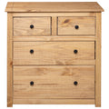 Featuring a rustic and trendy design, this solid wooden sideboard will make a decorative as well as practical addition to your decor. Designed with 4 drawers, the sideboard keeps your magazines, books, DVDs and multimedia devices well organised and within reach. Its sturdy top is ideal for placing decorative items such as vases or potted plants. The cabinet is made of solid pine wood. Every step of the process is carried out with the greatest care, be it polishing, painting or lacquering. The exquisite craftsmanship and the aesthetically-appealing wood grains make every piece of furniture unique and slightly different from the next. Important note: Colours and grains may vary from piece to piece, making each of our cabinets unique. The delivery is random, ensuring the exclusivity and individuality of your product.