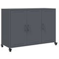 Are you hunting for a stylish sideboard? This well-designed sideboard adds an elegant charm to your existing interior! Durable material: Steel is an exceptionally hard and strong material. It offers sturdiness and stability. Cold-rolled steel plates have good surface quality and high dimensional accuracy.Ample storage space: This sideboard offers handy storage space for keeping your magazines, books, remote controls and other small items well-organised and within reach.Easy to maintain: The cabinet is easy to clean with a damp cloth and requires less maintenance.Easy to move: This sideboard has 4 wheels, making it move flexibly and park stably at any time.