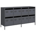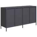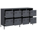 This sideboard with a practical design is a real eye-catcher for your home decor. Robust and stable: Cold-rolled steel is a type of low-carbon steel that is produced using the "cold rolling" process and processed at near-normal room temperatures. Cold-rolled steel has a smoother surface, higher strength, and higher precision.Ample storage space: The cabinet with drawers offers ample storage space for keeping your various daily essentials well organised and within easy reach.Sturdy tabletop: The sideboard cabinet has a sturdy tabletop, on which you can place your decorative items, photo albums, or small plants.Easy to maintain: Thanks to its smooth surface, the metal sideboard is easy to clean with a damp cloth and requires less maintenance. Warning:To prevent it from tipping over, this product must be used with the provided wall attachment device.