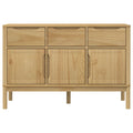 This modern sideboard, featuring a timeless look, is meant to be an excellent addition to your home. Solid pine wood: Solid pine wood is a beautiful natural material. Pine wood has a straight grain, and the knots give the material its signature, rustic look. Made of solid pinewood, the storage cabinet is sturdy and stable.Ample storage space: The sideboard cabinet offers ample storage space for keeping your various daily essentials well organised and within easy reach.Stable and sturdy top: The top of the cupboard is perfect for displaying your decorative items, picture frames, and potted plants. Practical doors: Keep your essentials free from dust by hiding them behind the doors.Wooden legs: The wooden legs give the product a natural and pleasant look while ensuring stability. It can blend well with any interior decor. Warning:To prevent it from tipping over, this product must be used with the wall attachment device (not provided).