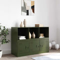 This sturdy sideboard is designed to be a focal point of your room with a trendy yet practical design. Stable material: The sideboard's frame is made of cold-rolled steel. Cold-rolled steel is a kind of low-carbon steel produced by a "cold rolling" method and processed at near normal room temperatures. Cold-rolled steel has a smoother surface, greater strength, and higher precision. Ample storage space: This sideboard offers handy storage space for keeping your magazines, books, remote controls and other small items well-organised and within reach.Easy to maintain: The table is easy to clean with a damp cloth and requires less maintenance.Practical handle: The sideboard comes with 3 handles that make it easy to open and close the cabinet while also adding to extra beauty. Warning:To prevent it from tipping over, this product must be used with the wall attachment device (not provided).