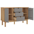 This classic wooden sideboard featuring a Scandinavian design is meant to meet your requirements and is an excellent addition to your room. Solid pine wood: Solid pine wood is a beautiful natural material. Pine wood has a straight grain, and the knots give the material its signature, rustic look.Stable frame: The wooden frame ensures sturdiness and stability.Ample storage space: This side cabinet has 3 drawers and 2 compartments with doors, offering ample storage space for keeping your magazines, books, DVDs, multimedia devices and other essentials well organised and within reach.Sturdy top: The sturdy top is perfect for placing potted plants, framed photos and other decorative items. WARNING:In order to prevent overturning, this product must be used with the wall attachment device provided. Note:Each product comes with an assembly manual in the box for easy assembly.