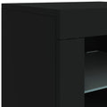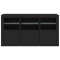 Decorate your room with this modern sideboard with LED lights, it easily blends with furniture in any style at your house. Durable material: The engineered wood is of exceptional quality with smooth surface and also features strength, stability and resistance to moisture.RGB LED lights: The buffet is equipped with vibrant RGB LED lights. With various customisable menus, you can effortlessly change the colour of the lights and even set them to adjust automatically. These LED lights not only enhance the contemporary look of the sideboard cabinet but also add to its trendy appeal.Ample storage space: The storage cabinet offers plenty of space to keep your everyday items neatly arranged and easily accessible.Displaying function: The sturdy top of the hallway cabinet is ideal for displaying decorative objects, photo frames, or potted plants.Practical doors: Keep your essentials free from dust by hiding them behind the doors of the side cabinet. Good to know:The product has a USB connector that requires a certified 5V USB power source (not included). Warning:To prevent it being overturned, this product must be used with the provided wall attachment device.