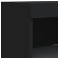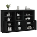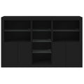 Decorate your room with this modern sideboard with LED lights, it easily blends with furniture in any style at your house. Durable material: The engineered wood is of exceptional quality with smooth surface and also features strength, stability and resistance to moisture.RGB LED lights: The buffet is equipped with vibrant RGB LED lights. With various customisable menus, you can effortlessly change the colour of the lights and even set them to adjust automatically. These LED lights not only enhance the contemporary look of the sideboard cabinet but also add to its trendy appeal.Ample storage space: The storage cabinet offers plenty of space to keep your everyday items neatly arranged and easily accessible.Displaying function: The sturdy top of the hallway cabinet is ideal for displaying decorative objects, photo frames, or potted plants.Practical doors: Keep your essentials free from dust by hiding them behind the doors of the side cabinet. Good to know:The product has a USB connector that requires a certified 5V USB power source (not included). Warning:To prevent it being overturned, this product must be used with the provided wall attachment device.