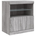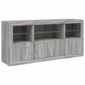 Decorate your room with this modern sideboard with LED lights, it easily blends with furniture in any style at your house. Durable material: The engineered wood is of exceptional quality with smooth surface and also features strength, stability and resistance to moisture.RGB LED lights: The buffet is equipped with vibrant RGB LED lights. With various customisable menus, you can effortlessly change the colour of the lights and even set them to adjust automatically. These LED lights not only enhance the contemporary look of the sideboard cabinet but also add to its trendy appeal.Ample storage space: The storage cabinet offers plenty of space to keep your everyday items neatly arranged and easily accessible.Displaying function: The sturdy top of the hallway cabinet is ideal for displaying decorative objects, photo frames, or potted plants.Practical doors: Keep your essentials free from dust by hiding them behind the doors of the side cabinet. Good to know:The product has a USB connector that requires a certified 5V USB power source (not included). Warning:To prevent it being overturned, this product must be used with the provided wall attachment device.