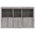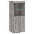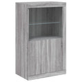 Decorate your room with this modern sideboard with LED lights, it easily blends with furniture in any style at your house. Durable material: The engineered wood is of exceptional quality with smooth surface and also features strength, stability and resistance to moisture.RGB LED lights: The buffet is equipped with vibrant RGB LED lights. With various customisable menus, you can effortlessly change the colour of the lights and even set them to adjust automatically. These LED lights not only enhance the contemporary look of the sideboard cabinet but also add to its trendy appeal.Ample storage space: The storage cabinet offers plenty of space to keep your everyday items neatly arranged and easily accessible.Displaying function: The sturdy top of the hallway cabinet is ideal for displaying decorative objects, photo frames, or potted plants.Practical doors: Keep your essentials free from dust by hiding them behind the doors of the side cabinet. Good to know:The product has a USB connector that requires a certified 5V USB power source (not included). Warning:To prevent it being overturned, this product must be used with the provided wall attachment device.