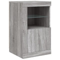 Decorate your room with this modern sideboard with LED lights, it easily blends with furniture in any style at your house. Durable material: The engineered wood is of exceptional quality with smooth surface and also features strength, stability and resistance to moisture.RGB LED lights: The buffet is equipped with vibrant RGB LED lights. With various customisable menus, you can effortlessly change the colour of the lights and even set them to adjust automatically. These LED lights not only enhance the contemporary look of the sideboard cabinet but also add to its trendy appeal.Ample storage space: The storage cabinet offers plenty of space to keep your everyday items neatly arranged and easily accessible.Displaying function: The sturdy top of the hallway cabinet is ideal for displaying decorative objects, photo frames, or potted plants.Practical doors: Keep your essentials free from dust by hiding them behind the doors of the side cabinet. Good to know:The product has a USB connector that requires a certified 5V USB power source (not included). Warning:To prevent it being overturned, this product must be used with the provided wall attachment device.