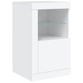 Decorate your room with this modern sideboard with LED lights, it easily blends with furniture in any style at your house. Durable material: The engineered wood is of exceptional quality with smooth surface and also features strength, stability and resistance to moisture.RGB LED lights: The buffet is equipped with vibrant RGB LED lights. With various customisable menus, you can effortlessly change the colour of the lights and even set them to adjust automatically. These LED lights not only enhance the contemporary look of the sideboard cabinet but also add to its trendy appeal.Ample storage space: The storage cabinet offers plenty of space to keep your everyday items neatly arranged and easily accessible.Displaying function: The sturdy top of the hallway cabinet is ideal for displaying decorative objects, photo frames, or potted plants.Practical doors: Keep your essentials free from dust by hiding them behind the doors of the side cabinet. Good to know:The product has a USB connector that requires a certified 5V USB power source (not included). Warning:To prevent it being overturned, this product must be used with the provided wall attachment device.
