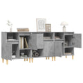 These trendy sideboards, featuring a sleek and classic design, are meant to upgrade your interior to the next level. Durable material: The engineered wood is of exceptional quality with a smooth surface and also features strength, stability, and resistance to moisture. Made of engineered wood, the cabinet is easy to clean with a damp cloth.Ample storage space: This sideboard cabinet has 4 compartments and 2 doors, offering ample storage space for keeping your magazines, books, DVDs, multimedia devices and other essentials well organised and within reach.Wooden feet: The solid eucalyptus wood feet give the storage cabinet a natural and pleasant look while ensuring stability.Displaying function: The top of the cupboard is perfect for placing potted plants, framed photos and other decorative items. Good to know:The doors can be installed in two ways. Warning:To prevent it being overturned, this product must be used with the provided wall attachment device.