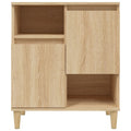 These trendy sideboards, featuring a sleek and classic design, are meant to upgrade your interior to the next level. Durable material: The engineered wood is of exceptional quality with a smooth surface and also features strength, stability, and resistance to moisture. Made of engineered wood, the cabinet is easy to clean with a damp cloth.Ample storage space: This sideboard cabinet has 4 compartments and 2 doors, offering ample storage space for keeping your magazines, books, DVDs, multimedia devices and other essentials well organised and within reach.Wooden feet: The solid eucalyptus wood feet give the storage cabinet a natural and pleasant look while ensuring stability.Displaying function: The top of the cupboard is perfect for placing potted plants, framed photos and other decorative items. Good to know:The doors can be installed in two ways. Warning:To prevent it being overturned, this product must be used with the provided wall attachment device.