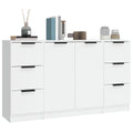 Featuring minimalist charm, these sideboards are meant to satisfy your various requirements and make an ideal complement to your room. Easy-to-clean material: Made of engineered wood, the sideboard cabinets are easy-to-clean. The engineered wood is of exceptional quality with smooth surface and also features strength, stability and resistance to moisture.Ample storage space: The storage space makes these sideboards easy to keep things organised.Multifunctional cabinet: The sturdy top is ideal for displaying decorative objects, photo frames, or potted plants. They can also be used as console cabinets, side cabinets, etc. Note:Each product comes with an assembly manual in the box for easy assembly. Warning:In order to prevent overturning, these products must be used with the wall attachment device provided.