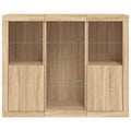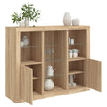 Decorate your room with these modern sideboards with LED lights, they easily blend with furniture in any style at your house. Durable material: The engineered wood is of exceptional quality with a smooth surface and features strength, stability and resistance to moisture.Ample storage space: These buffets provide plenty of storage space for keeping your magazines, books, remote controls and other small items well-organised and within easy reach.Displaying function: The sturdy top of sideboard cabinets is ideal for displaying decorative objects, photo frames, or potted plants.Adjustable LED lights: These storage cabinets are equipped with RGB LED lights, which have different menus to change the light colour and adjust it automatically, decorating your home colourful and beautiful. Warning:To prevent it being overturned, this product must be used with the provided wall attachment device.Good to know:The product has a USB connector that requires a certified 5V USB power source (not included).