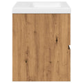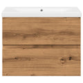 This stylish sink cabinet with a built-in basin, featuring spacious storage space, is an excellent addition to your bathroom, giving it a tidy and striking appearance! Sturdy material: The under sink cabinet is made of engineered wood, that is of exceptional quality with smooth surface and also features strength, stability and resistance to moisture.Ample storage: The bathroom sink unit features a drawer, offering ample storage space to store items in your bathroom.Practical design: The top of this bathroom cabinet is ideal for placing the sink.Wall-mounted function: The bathroom cabinet can be wall-mounted to add extra storage space. That way, you can maximise your floor space and keep the area clean.Overflow function: An overflow is also equipped to flow water out when it gets too full. Good to know:Screw(s) and plug(s) for inside the wall are not included. Seek and use screw(s) and plug(s) suitable for your walls. If you are uncertain, seek professional advice. Read and follow each step of the instruction carefully.The faucet is not included in the delivery.