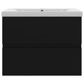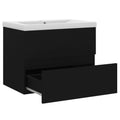 This sink cabinet with a built-in basin is a perfect match for your bathroom or washroom with a striking, tidy appearance. The storage cabinet has 1 drawer, offering ample storage space to store items in your bathroom. It fits perfectly under the sink and makes bathroom storage quite convenient. Made of ceramic, the basin can not only serve as a vessel for daily use but also as an adornment in your living space. Thanks to its trendsetting and contemporary design, this washbasin will definitely suit any decor. An overflow is also equipped to flow water out when it gets too full. Its glazed surface brings itself a modern yet elegant design. Additionally, the cabinet and basin are easy to clean with a damp cloth. Please note: The tap and the drain are not included in the delivery.