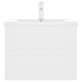 This sink cabinet with a built-in basin is a perfect match for your bathroom or washroom with a striking, tidy appearance. The cabinet is made of engineered wood, making it sturdy and stable. The cabinet has 1 drawer, offering ample storage space to store items in your bathroom. It fits perfectly under the sink and makes bathroom storage quite convenient. Made of ceramic, the basin can not only serve as a vessel for daily use but also as an adornment in your living space. Thanks to its trendsetting and contemporary design, this washbasin will definitely suit any decor. An overflow is also equipped to flow water out when it gets too full. Its glazed surface brings itself a modern yet elegant design. Additionally, the cabinet and basin are easy to clean with a damp cloth. Please note: The faucet and push drainer with overflow function are included in the delivery. The tap is a hot and cold tap, and if you have a need for hot water, a water heater must be connected.