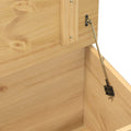 This storage box is an ideal storage solution and makes a great decorative addition to your living space. Solid pine wood: Solid pine wood is a beautiful natural material. Pine wood has a straight grain, and the knots give the material its signature, rustic look. Made of solid pine wood, the blanket box is durable and sturdy.Ample storage space: This storage box offers ample space to keep your clothing, blankets, toys, cushions and other daily essentials well-organised.Easy to open and close: The gas lift mechanism ensures the lid of the toy box can be opened and closed slowly without pinching fingers.Versatile usage: With a stable top, the storage chest offers a secure surface to place snacks, drinks, vases, fruit bowls, or other decorative items. This storage box can also be used as a coffee table, couch table, side table, etc.Metal handles: The toy chest comes with metal handles that make drawers easy to open and close while adding extra beauty.